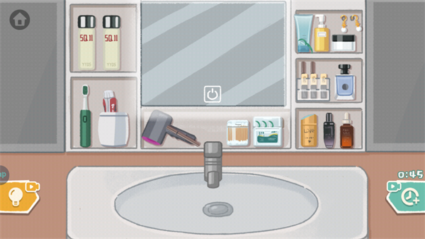 4、最后需要将洗手池清理干净,关上柜子门把柜门擦干净,开灯擦除镜子上的雾气,即可成功通关