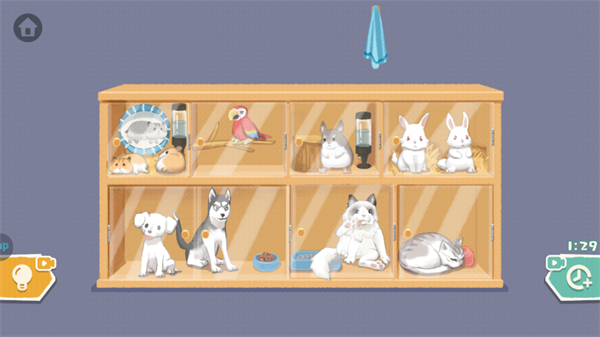 4、最后将仓鼠、鹦鹉分别放在合适的格子里,即可收纳成功。不清楚的玩家可以参考图片
