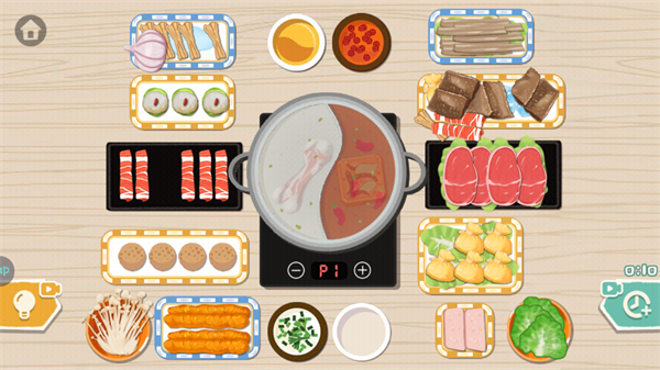 5、最后将电磁炉的火力调到P7,火锅底料放进左边锅里,骨头放进右边锅里即可成功通关