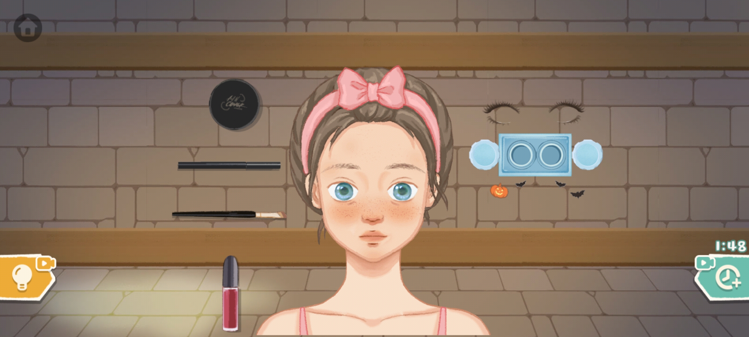 3、【一起捣蛋】关卡需要cos万圣小魔女,首先打开美瞳盒子,将美瞳依次戴上