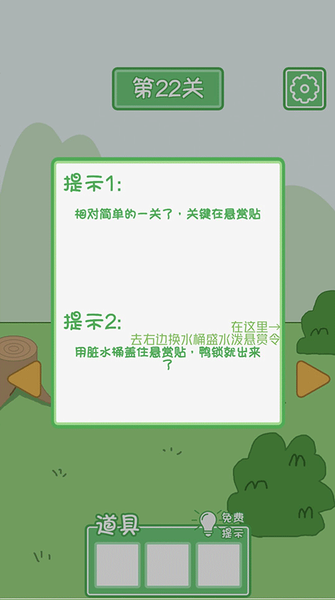 第2关先点击右下边的灌木丛,接着点击铲子。得到铲子后,将铲子拖动到草地上的裂缝处就过关了。