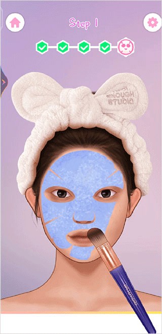 5、在人物脸部拖动化妆刷,涂抹面膜。