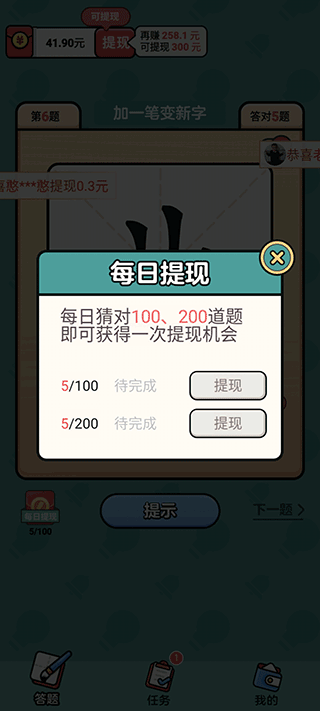 4、游戏里有个每日提现,我们点击进去有通过关卡的次数,可以提现几次