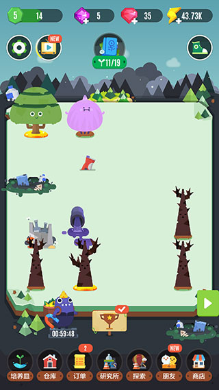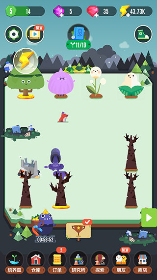 1、进入游戏之后,我们会拥有一片植物园,现在点击左下角的培养皿按钮尝试种植新植物,