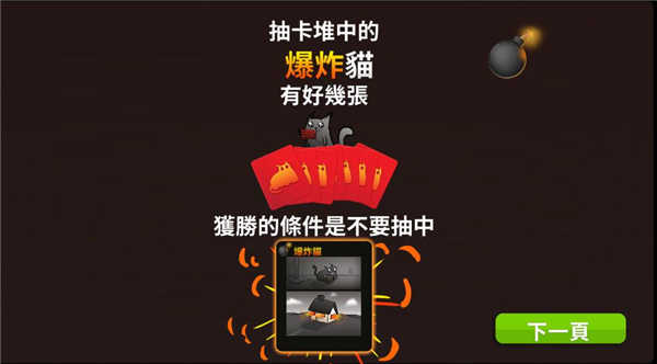 1、抽卡堆中的爆炸猫有好几张,胜利的条件是不要抽中;