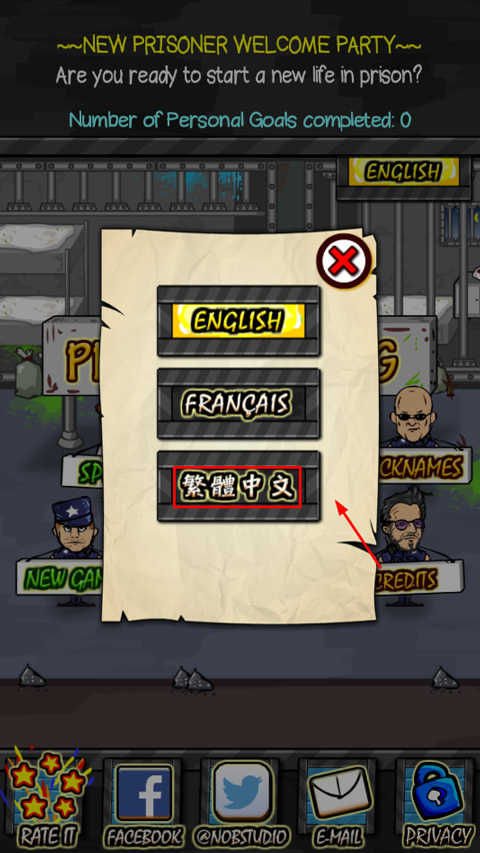6、已完成个人目标数:每名囚犯的个人目标不同,当完成后数值+1,数值每到达1、2、3、4……9时在“新游戏”解锁新的一组囚犯选择!