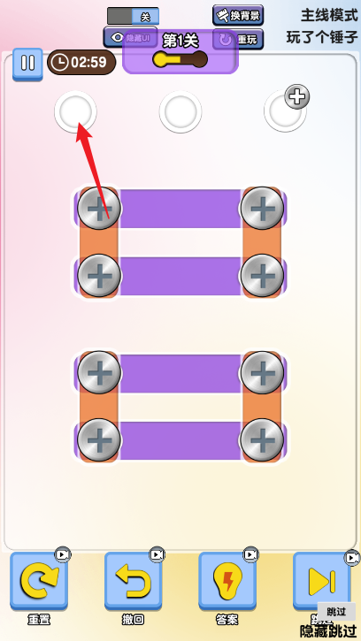 拧紧所有看到的螺丝,这就是你的任务,需要控制好时间,让螺丝刚好进入木头里,又不会太露,达到三星的成就!