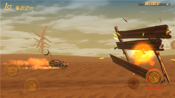 4、摧毁敌方汽车后的汽车会重生,点击地雷,可以击中身后的赛车;
