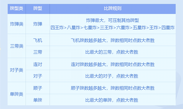 此外,飞机压制三带、连对压制对子、顺子压制单牌。