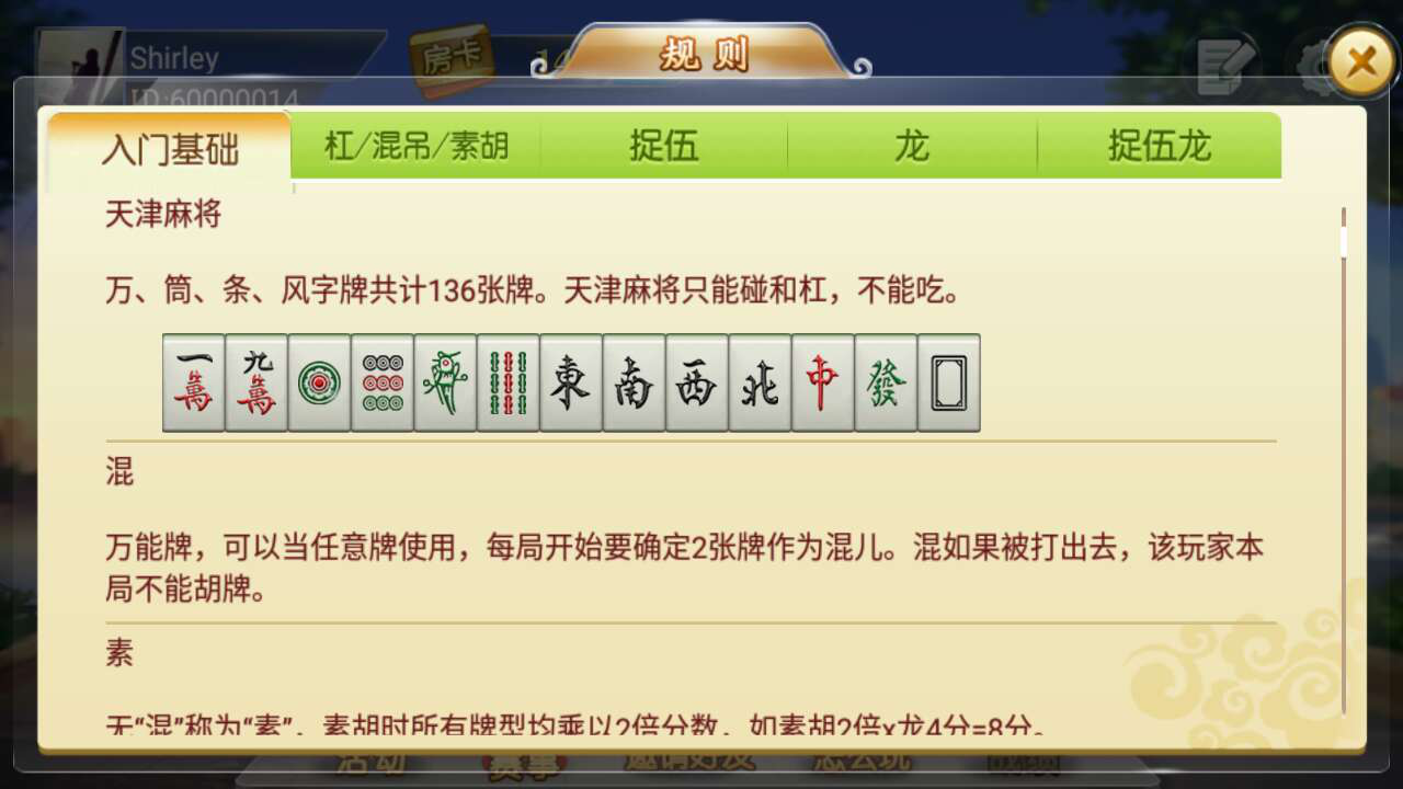 在游戏中完整的保留了天津麻将的游戏元素,提留、混吊、双混吊、捉5、龙等特点;