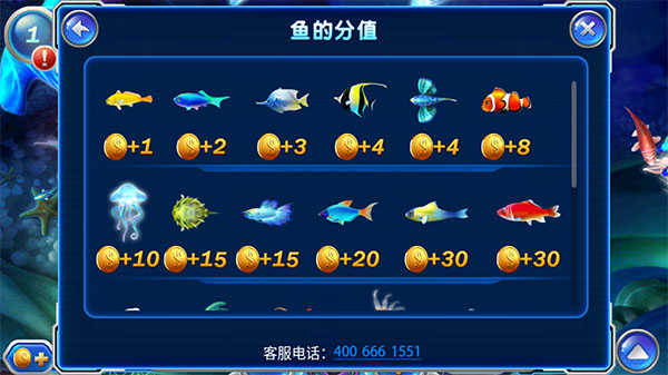 3、开炮会消耗一定金币,捕捉到鱼会获得金币