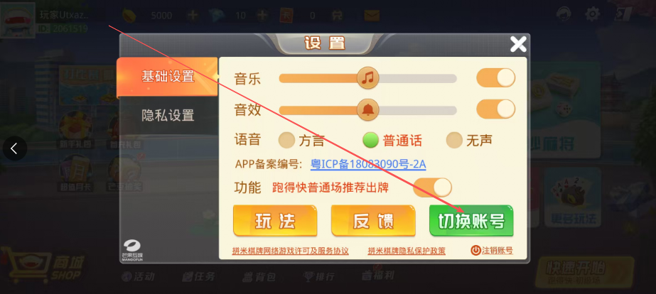 2.之后在设置页面中,玩家直接点击切换账号即可进行下一步操作。