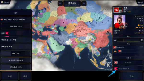可以看到,这里原本是“印度 希腊王国”,但在地图上点击国家后,再点击后该处,就会变成“西汉”。(步骤7图可见)