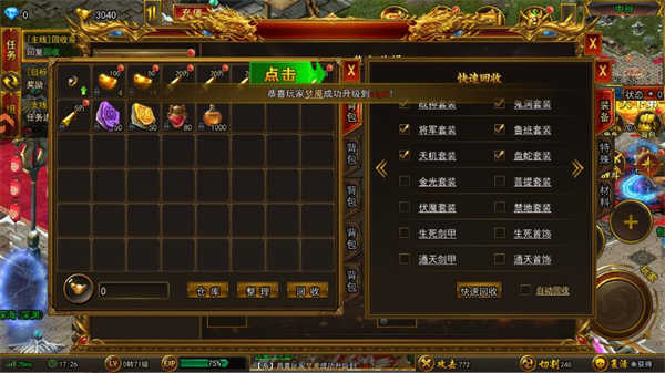 4、挂机爆元宝,轻松刷怪,元宝装备全回收