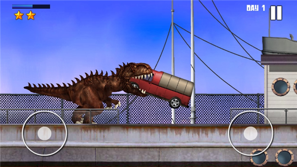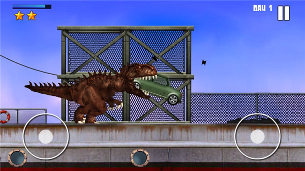 2、刚进地图别直奔市中心,先在郊区练练手,撞撞小房子、掀掀小汽车,摸熟恐龙的转向、冲撞手感。