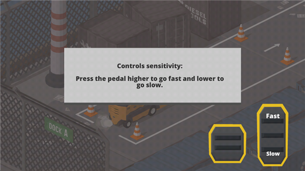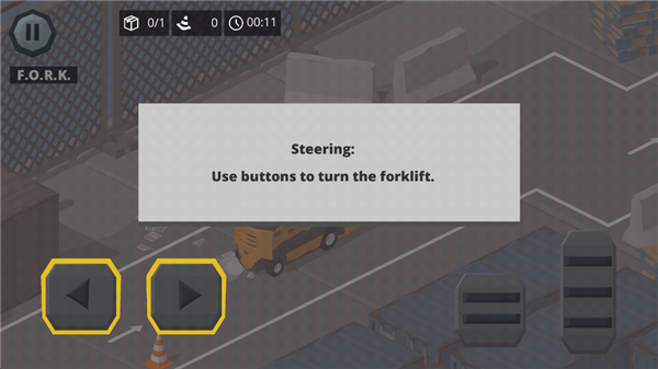 3、油门可控制叉车的前进速度,刹车长按可以倒车。