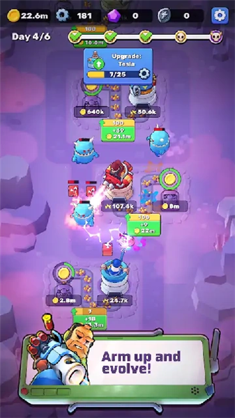 贪婪的防御者放置塔防是一款策略塔防游戏,还融入了放置经营元素,在其中玩家将化身为矿业帝国领袖,去深入地下开采资源,去建设防御塔保护自己的采矿基地,面对源源不断的敌人攻击,去进行合理的塔防布局才能顺利保护基地。随着游戏深入,敌人会不断变化越来越强,我们需要根据敌人的类型,来调整自己的策略。