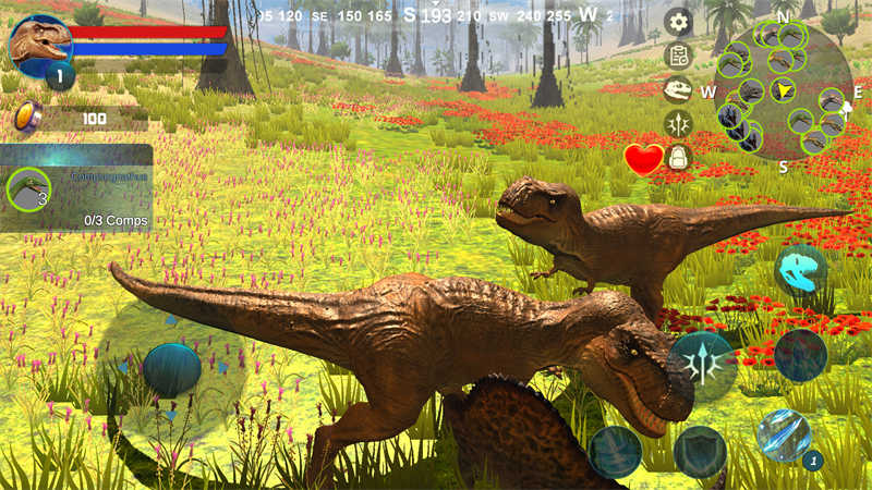 2、升级你的霸王龙:通过击败其他恐龙获得的经验和水平,升级可以解锁新的技能,拥有更多的生命值,解锁其他霸王龙。
