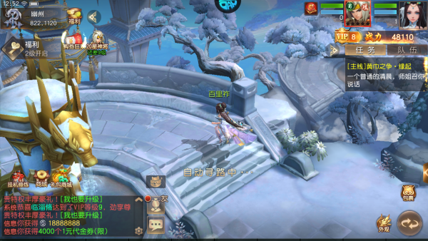 4、游戏玩法简单,点击主线自动寻路,与NPC进行对话,完成任务。