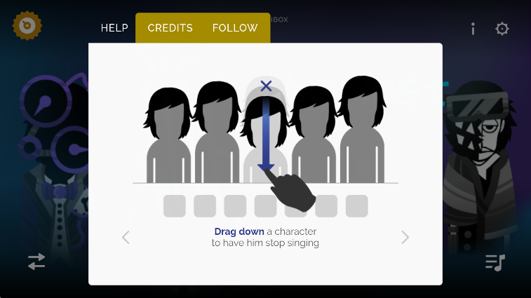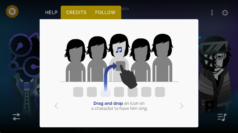 5、只需在不同的字符上拖放图标,然后开始创建音乐