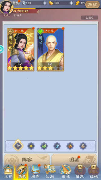 1、玩家可以进入招募功能中,就能轻松解锁不同等级的侠客,只要灵活培养,其实力可不会差。