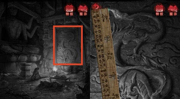 33、【民国】前往闻谕殿,点击查看龙纹浮雕,拿出「鲁班尺」,测量龙口至龙尾的距离,获得线索(龙口至龙尾共21个间隔)。