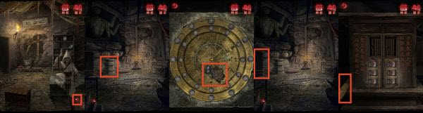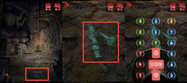 5、查看地面的方砖,拿出「唢呐」,根据步骤4《灵塔思》最后一页下方的“五六”,结合方砖上的“五四五”,演奏唢呐(五六五四五),地道入口打开。