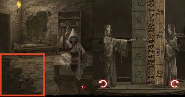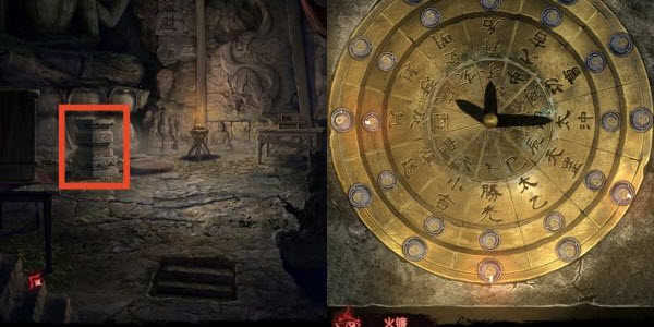 25、【唐朝】前往闻谕殿,点击查看宙晷盘,根据步骤24左侧浮雕上的文字提示“河魁”、“戌”、“辰”,使用「火镰」点燃“天罡”、“辰”、“河魁”(点燃蜡烛后的阴影落在“河魁”、“戌”、“辰”上),来到民国幻境【 展开剧情】。
