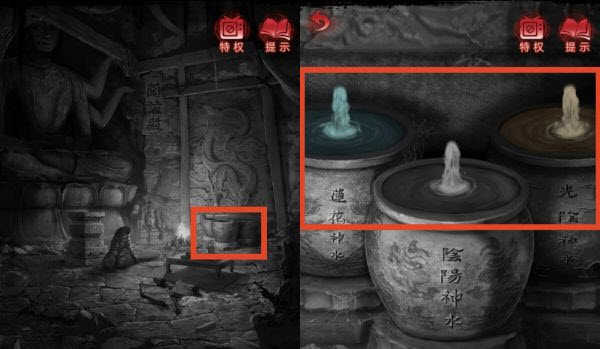 26、【民国】点击查看龙纹浮雕下的水缸,使用「竹罐」点击水缸,获得「莲花神水」、「阴阳神水」、「光阴神水」【 展开剧情】。
