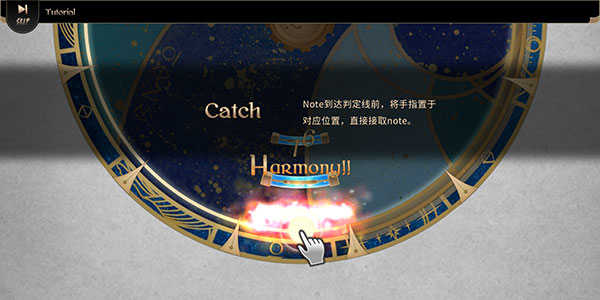 Catch:Note到达判定线前,将手指置于对应位置,直接截取note。