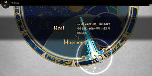 Rail:Note到达判定线前,将手指置于对应位置,按住并跟随轨道直到轨道结束。