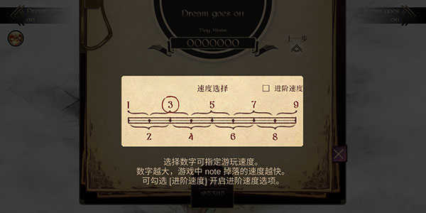 6、数字越大,游戏中音块的掉落速度就越快。你也可以勾选进阶速度开启进阶选项。