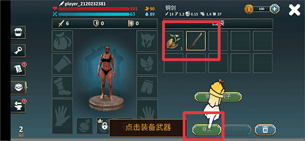 5、该包裹中拥有武器,玩家可以在背包中点击武器并将它穿戴在身上