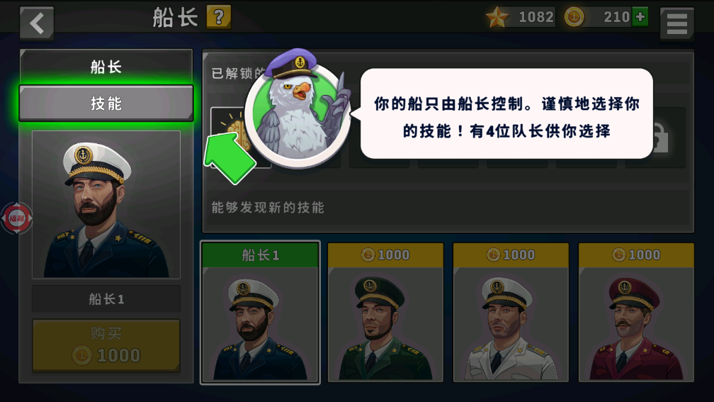4、快来选择自己喜欢的船长来运送物资吧,每位船长还有不同的技能哦!