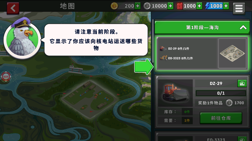 2、玩家根据游戏引导来学会使用船只来运送货物。