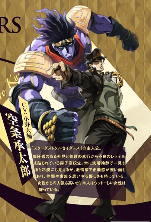 漫画《JOJO的奇妙冒险》及其衍生作品中的角色,是第三代JOJO,其替身名为“白金之星”。