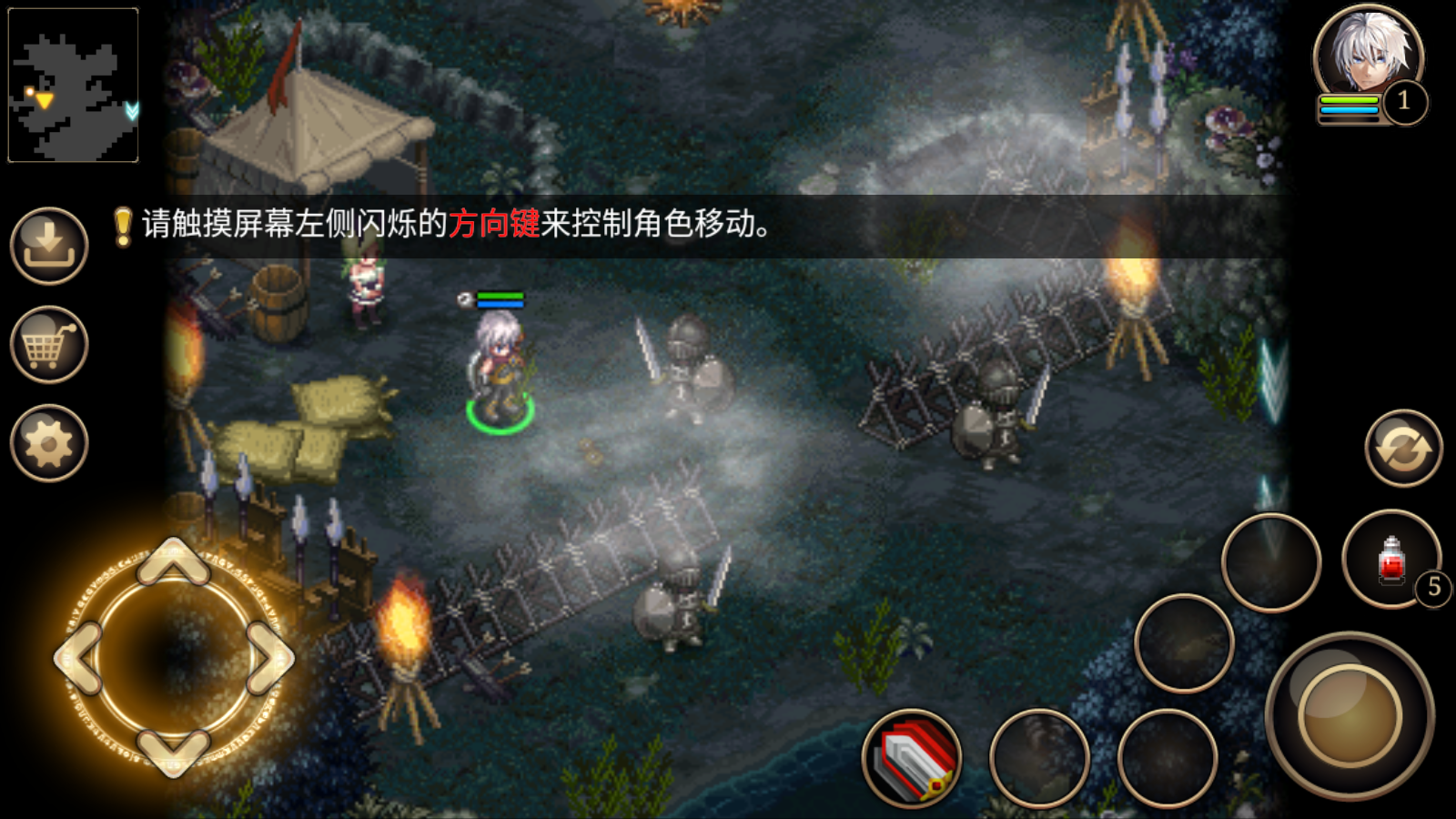 2、通过方向键控制角色移动,右侧是角色的行动,技能和道具栏。