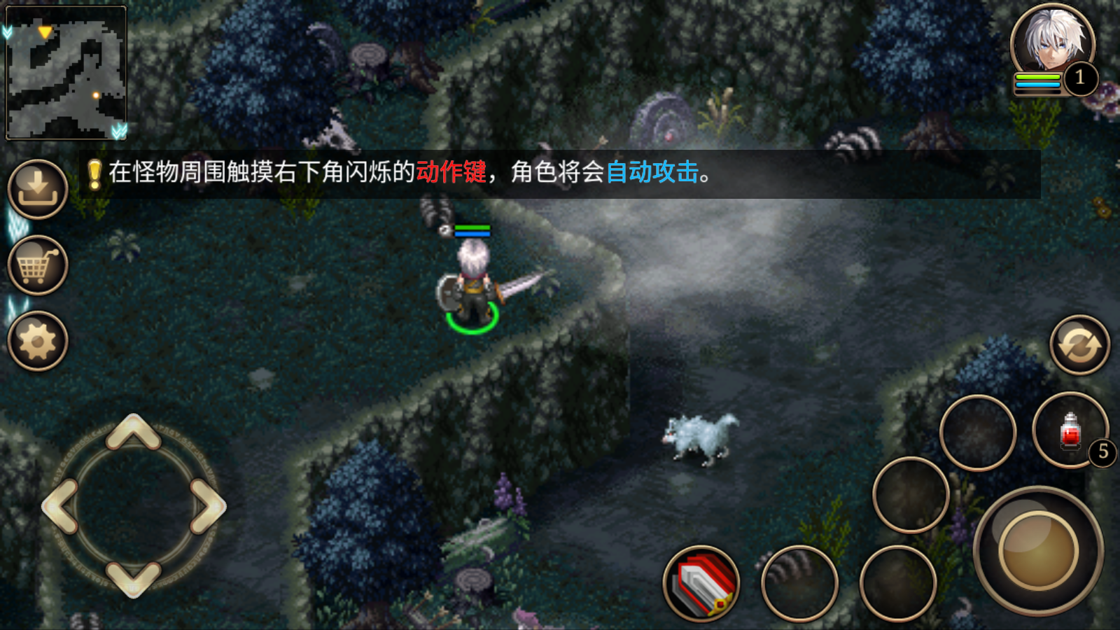 3、在怪物周围按下行动键,角色就会自动进行战斗,同时可以点击技能图标释放技能。