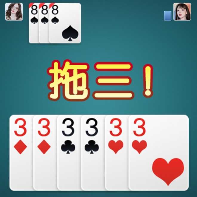 拖三:上游最后出纯3或双带时出纯3,每3加100分。