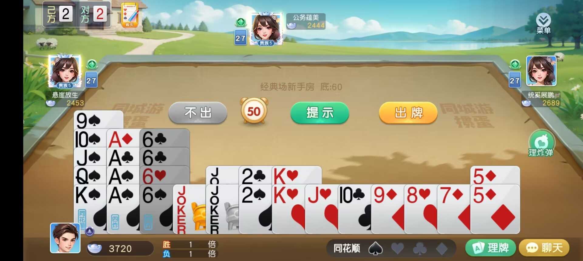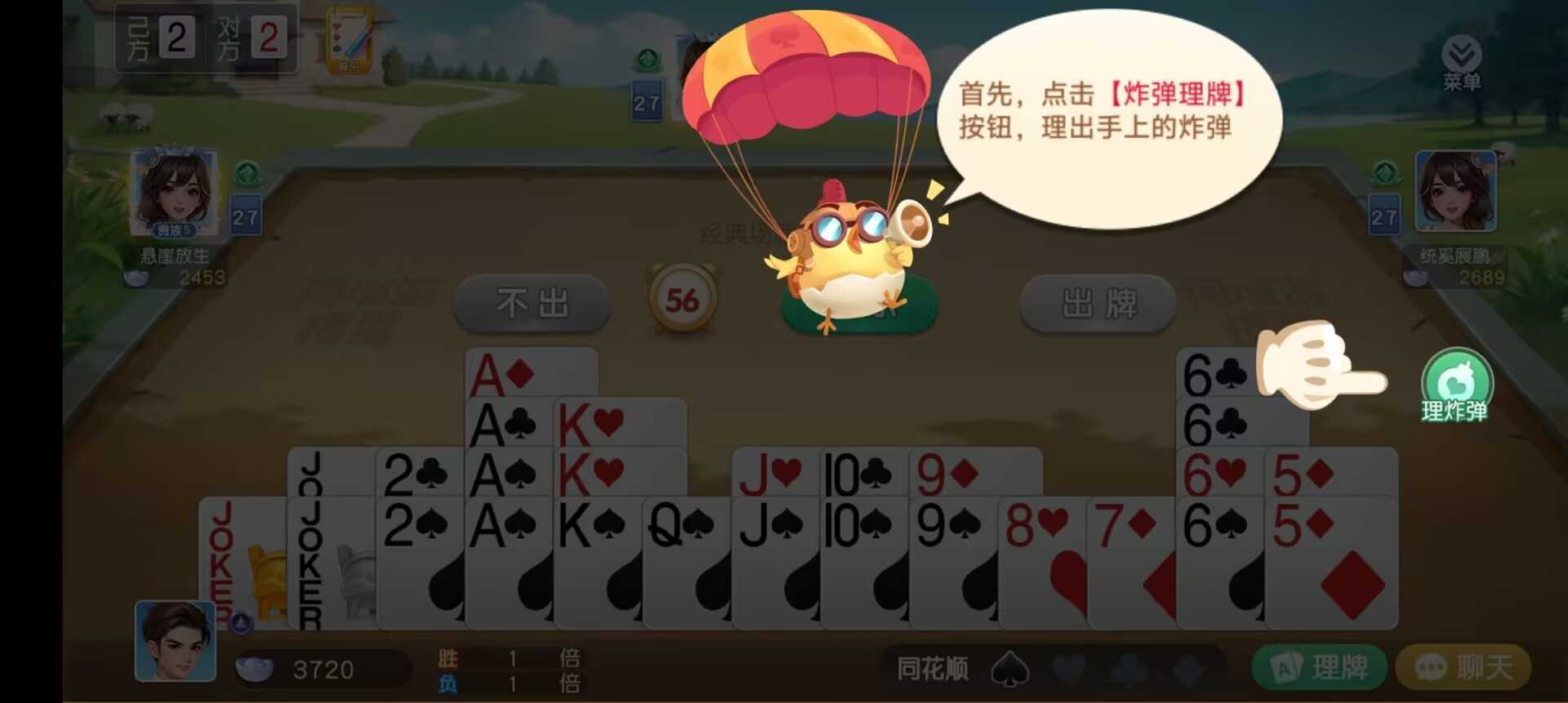 1、经典玩法:完整保留传统掼蛋规则,支持2v2组队竞技,完美复刻线下掼蛋体验。