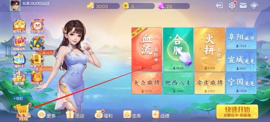 1.玩家进入游戏之后,可以直接在页面中点击左下角的商城快速进行充值。