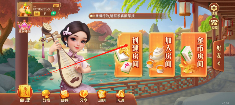 1、从本页下载最新版本的哈灵麻将,打开游戏之后选择【创建房间】