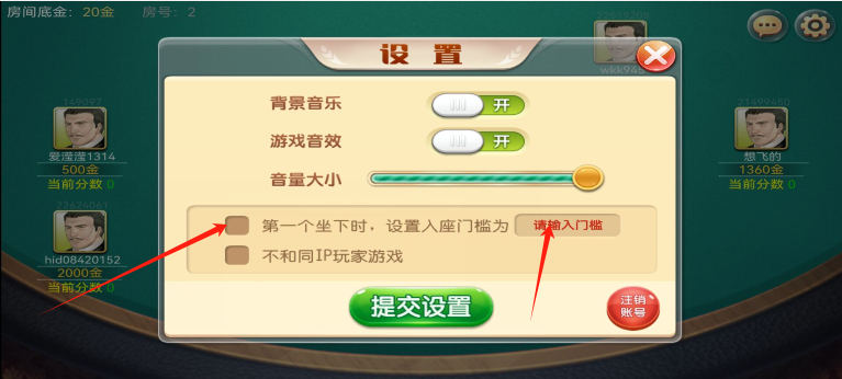1、对局设置,支持对入座门槛、不和同ip玩家的设置,满足玩家的需求。