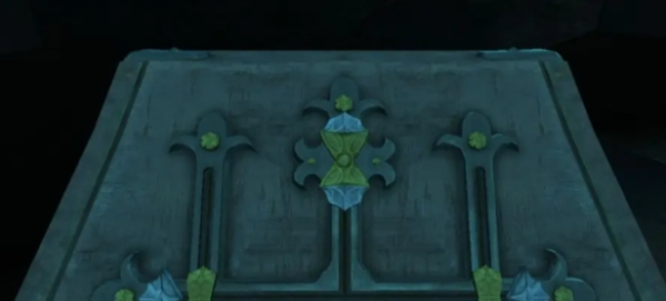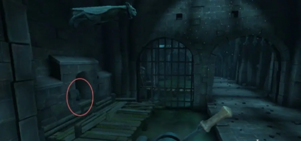 10、将石首放入左侧墙壁的凹槽中,向下拖拽石首的下巴,打开石门。