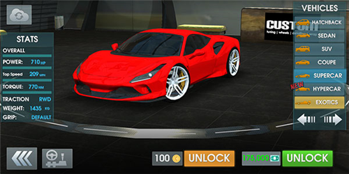 2、点击车库,玩家可以对车辆进行自定义改装与升级。