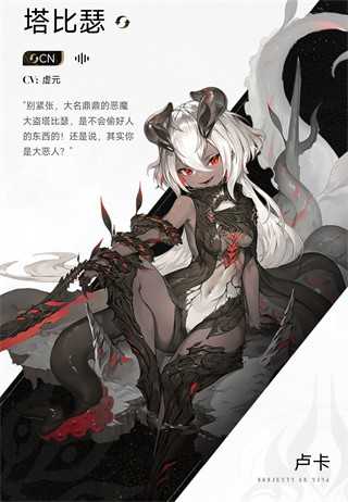 白发红瞳,带有恶魔角,服饰以黑红为主且风格较为尖锐