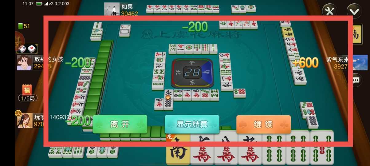 第三步,当比赛中有人胡牌后就会进行结算结束游戏。