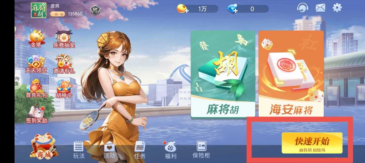 第一步,在游戏中点击快速匹配,根据自己的金豆数量选择场级。