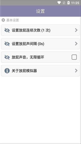 3、另外还可以进入更详细的设置界面,这里可以设置放屁次数、放屁间隔、还有无限循环放屁!