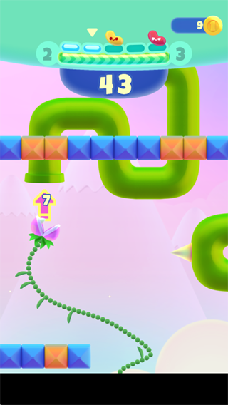 游戏的玩法十分简单,玩家可以采用单个手指来操作,不停地滑动转弯向上前进;